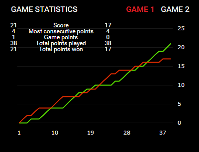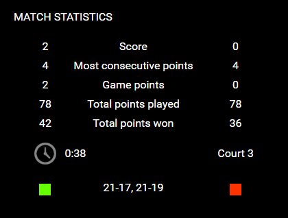 มาดูสถิติของ น้องพีช หลังจากเอาชนะ สินธุ ไปด้วยสกอร์ 2-0 เกม 21-17, 21-19