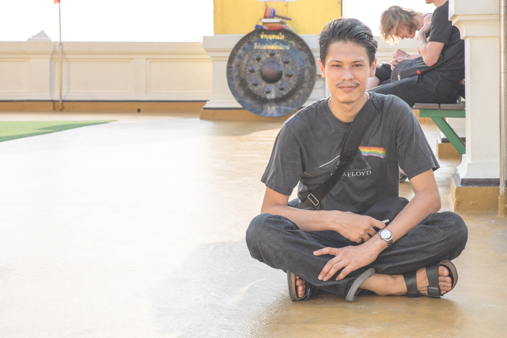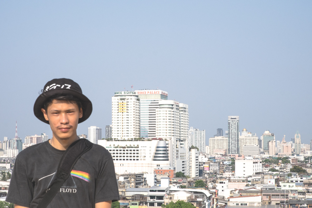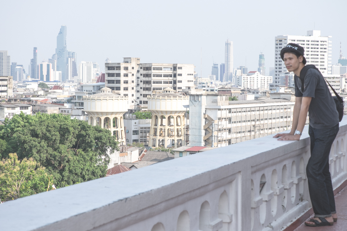 แบบง่ายๆแค่มาเดินเที่ยวกันกับเพื่อนเลยถ่ายรูปให้เพื่อนไปเรื่อยๆโดยใช่ฉากหลังของภูเขาทองก็เท่านี้แหละ