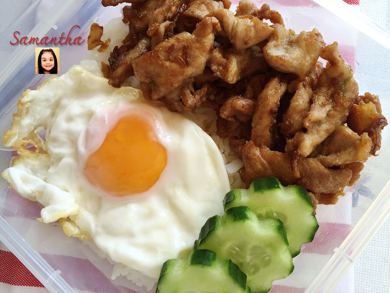 อาหารตามสั่งสูตรและวิธีทำหมูทอดกระเทียมไข่ดาวราดข้าว