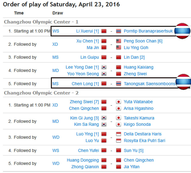 ร่วมเชียร์ "พีช พรทิพย์ & สอง ทนงศักดิ์" ในแบดมินตัน Bonny China Masters 2016 [23 เม.ย.59] : รอบรองชนะเลิศ (12.00 น.)