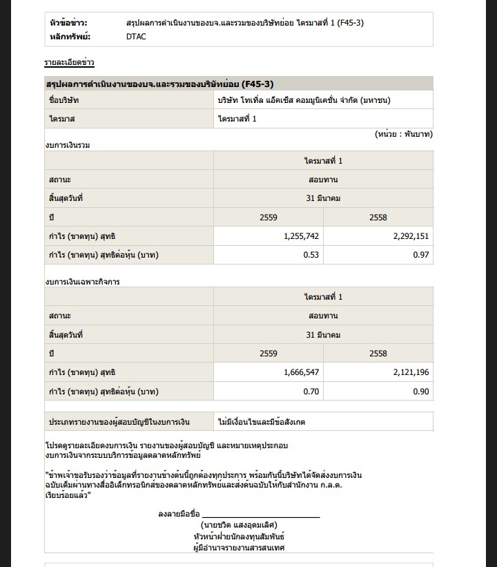 DTACผลประกอบการกำไรลดลงเกือบ50%จากปีก่อนเอาไงดี วันจันทร์หุ้นจะตกแรงไหม