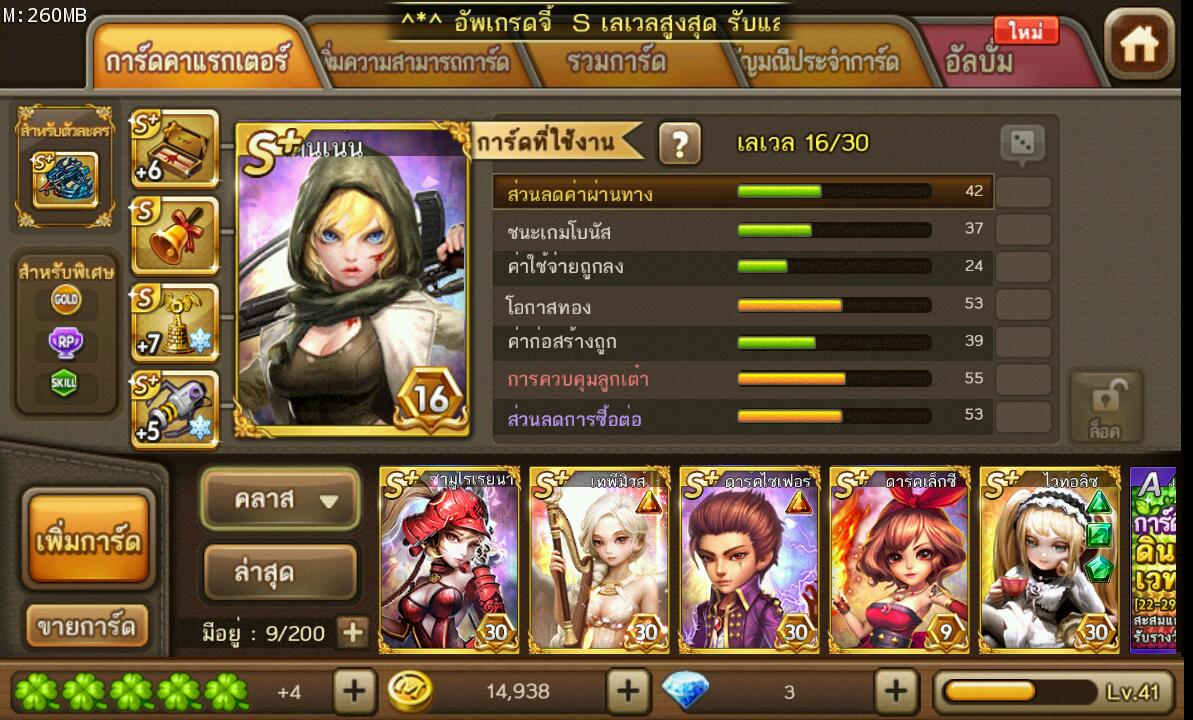 อันนี้การ์ด S S+ ที่ดอง อันนี้จี้เครื่องรางที่ดอง ควรอัพสกิลการ์ดกับจี้อันไหนดี? ควรใช้อะไรคู่กับอะไร? แนะนำเราที เราไม่ค่อยสันทัดการจับคู่ เลือกตามความพอใจอย่างเดียวเลย 555 ปล.ส่วนใหญ่เราจะเล่นแ