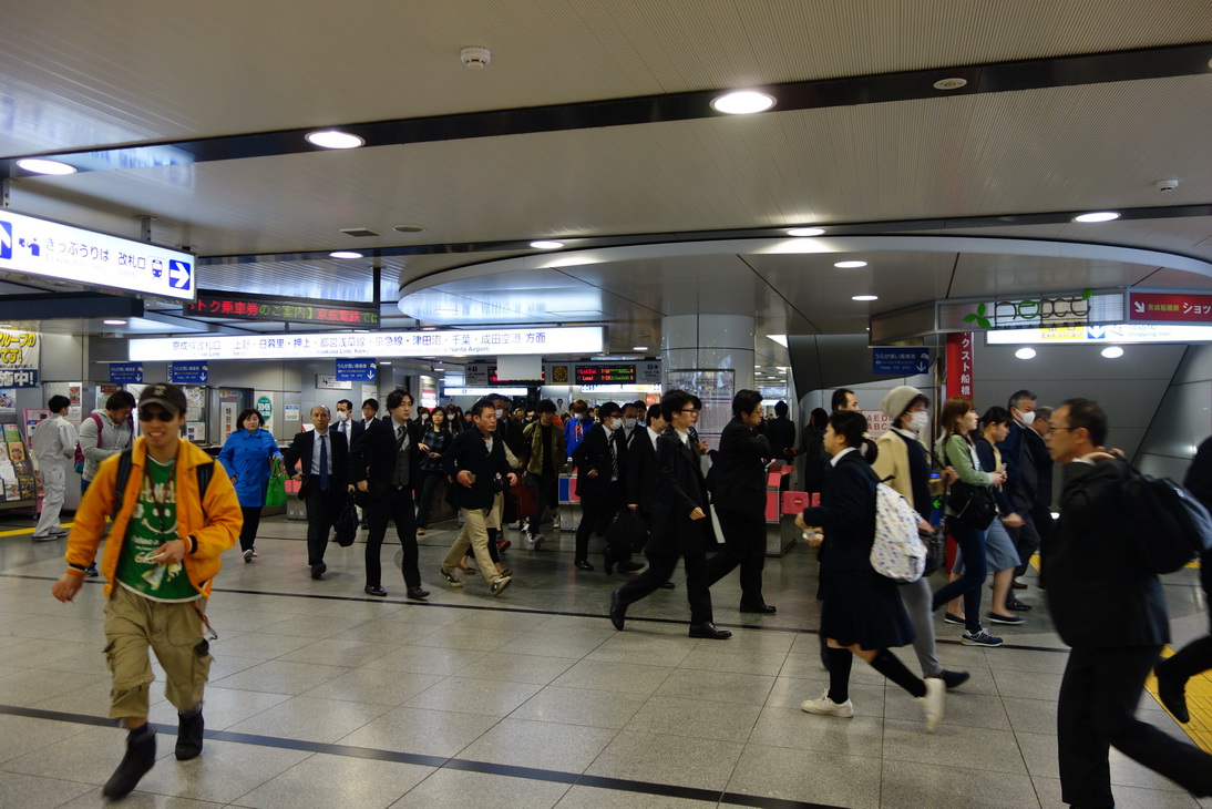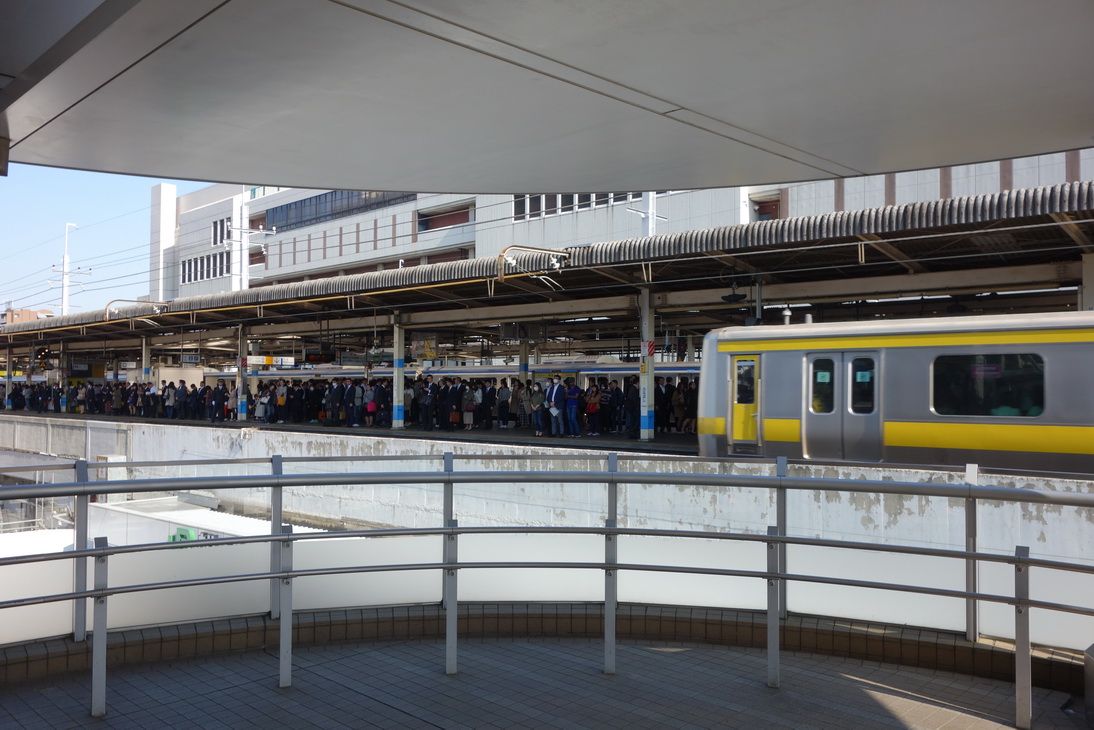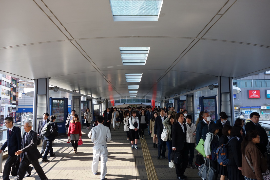 สมเป็นช่วง Rush Hour คนเพียบ เดินสวนกระแสคนทำงานไป Funabashi City Chūō Library