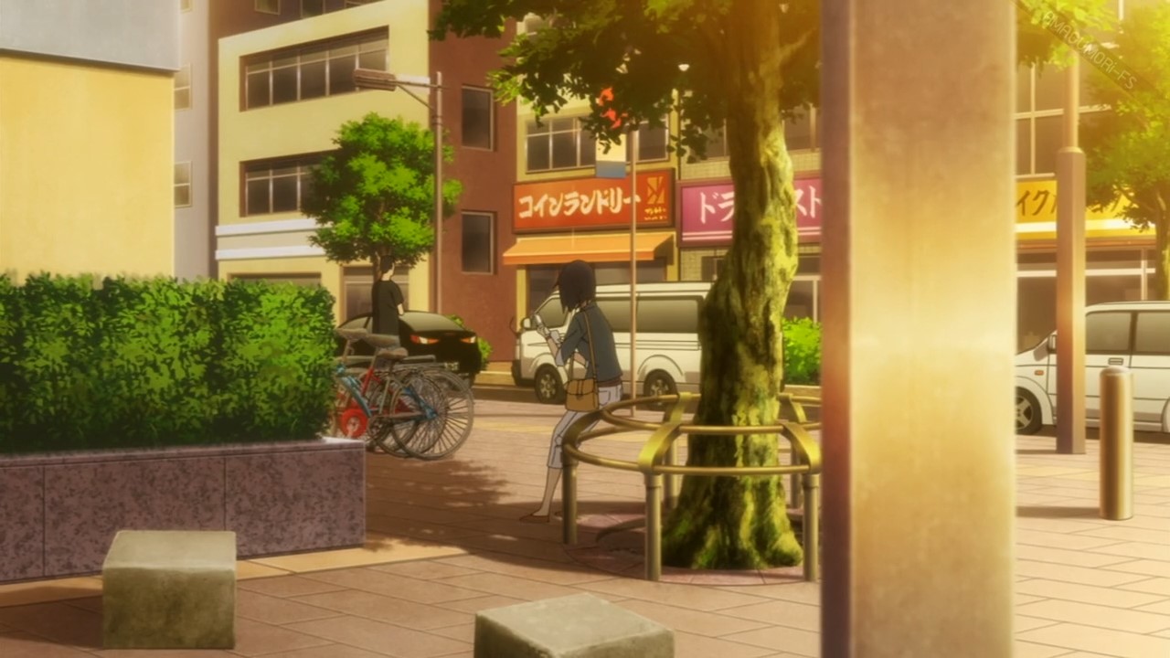 เดินออกมาหน้าสถานีเลี้ยวขวาจะเจอเลย จุดที่เร็นเกะจะเดินไปท่ารถบัสแล้วเหนื่อย หิวน้ำในตอนที่ 7 SS2