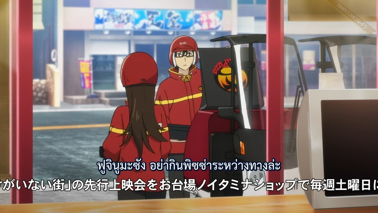 จากนั้นเดินต่อไปยังร้านพิซซ่าของซาโตรุและไอริ