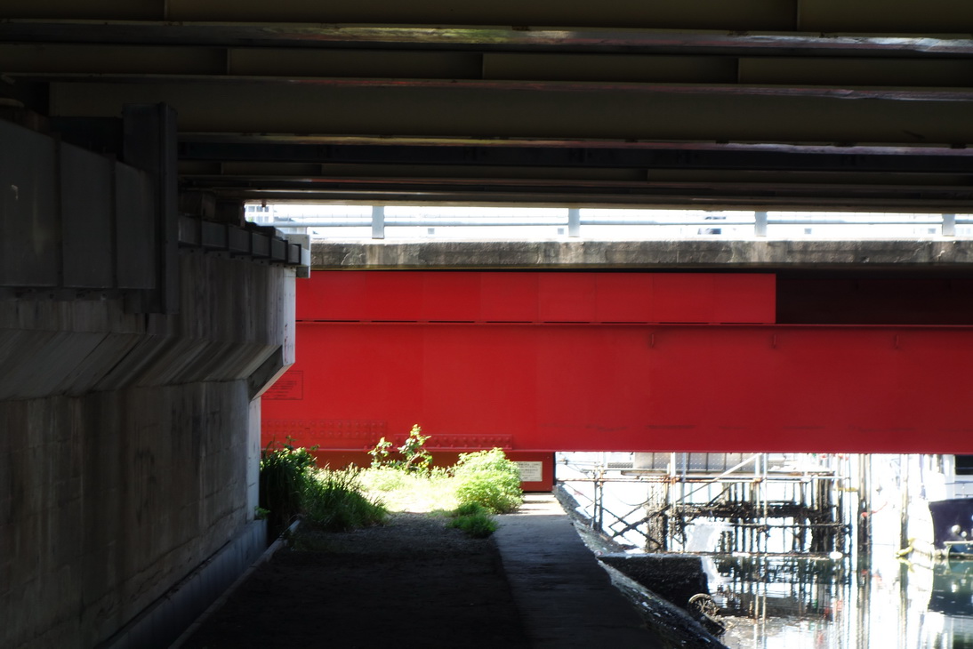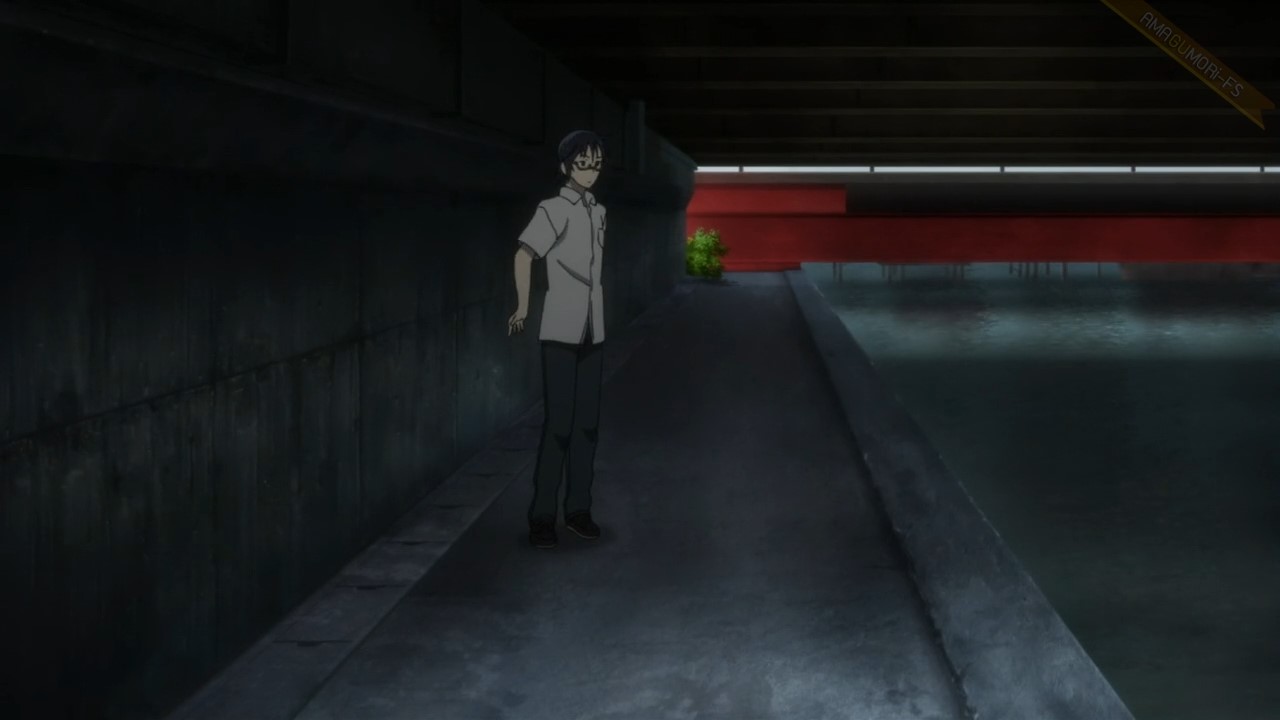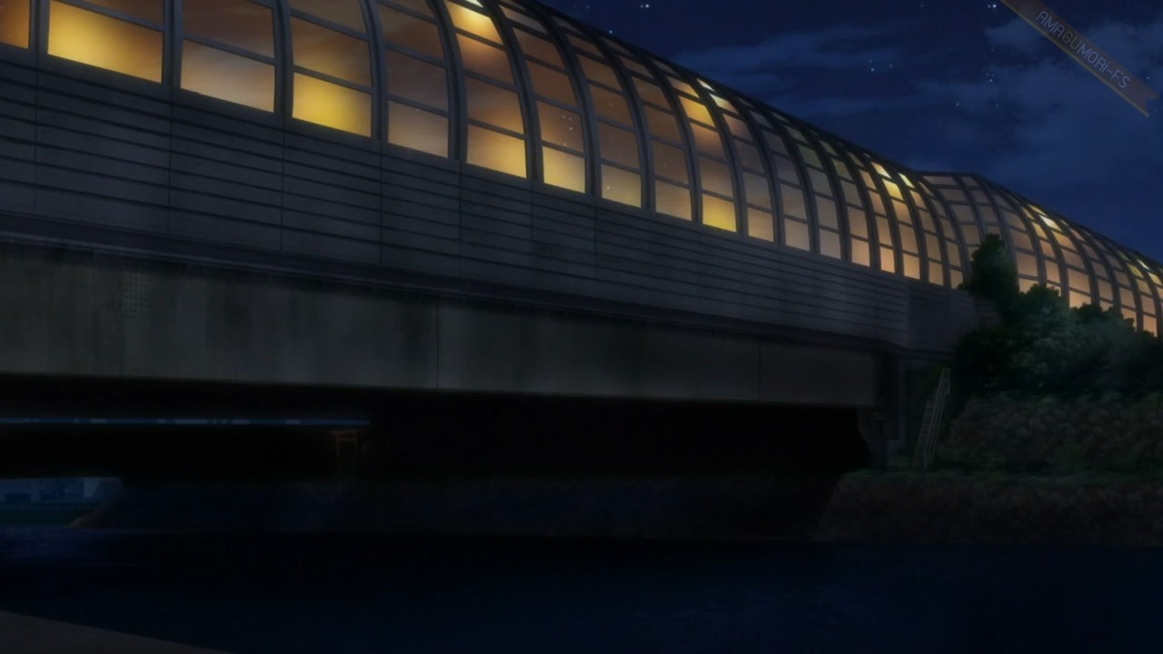 จากร้านพิซซ่าเลี้ยวขวา เดินไปใต้สะพานที่ซาโตรุหลบหนี