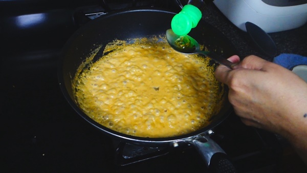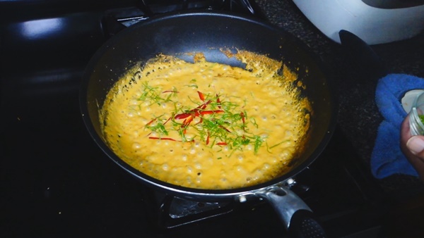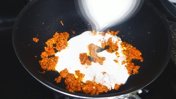ใส่กะทิลงผัดให้เข้ากัน
