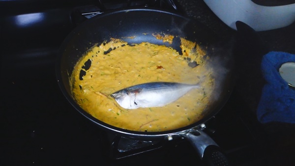 เตรียมใส่ปลาทูสดลงใสน้ำแกงได้เลยค่ะ ถ้าแห้งก็เติมน้ำได้นะคะ