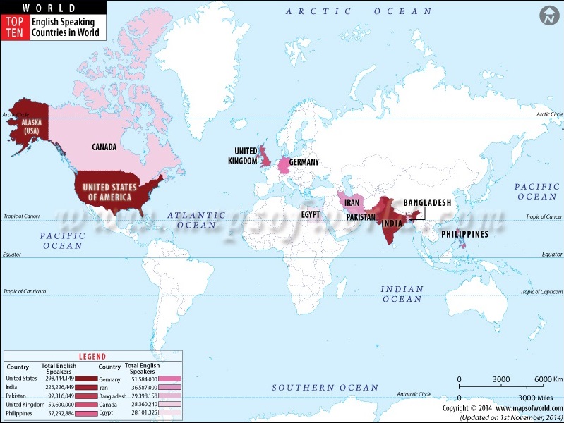 โดยอันดับ 2 และ 3 ประเทศที่มีผู้ใช้ภาษาอังกฤษมาก เป็นของประเทศอาณานิคมเก่าอย่างอินเดีย และปากีสถาน