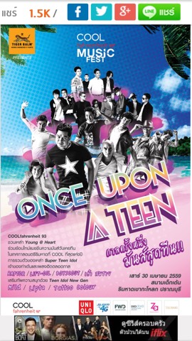 ขายบัตรคอนเสิร์ต COOLfahrenheit Music Fest #Once upon A Teen” (คูลฟาเรนไฮต์ มิวสิค เฟส #วันซ์ อัพออน อะทีน) กาลครั้งหนึ่งมันส์สุดทีน!