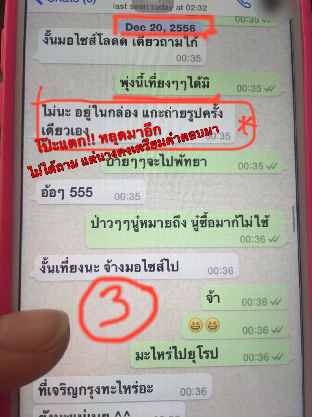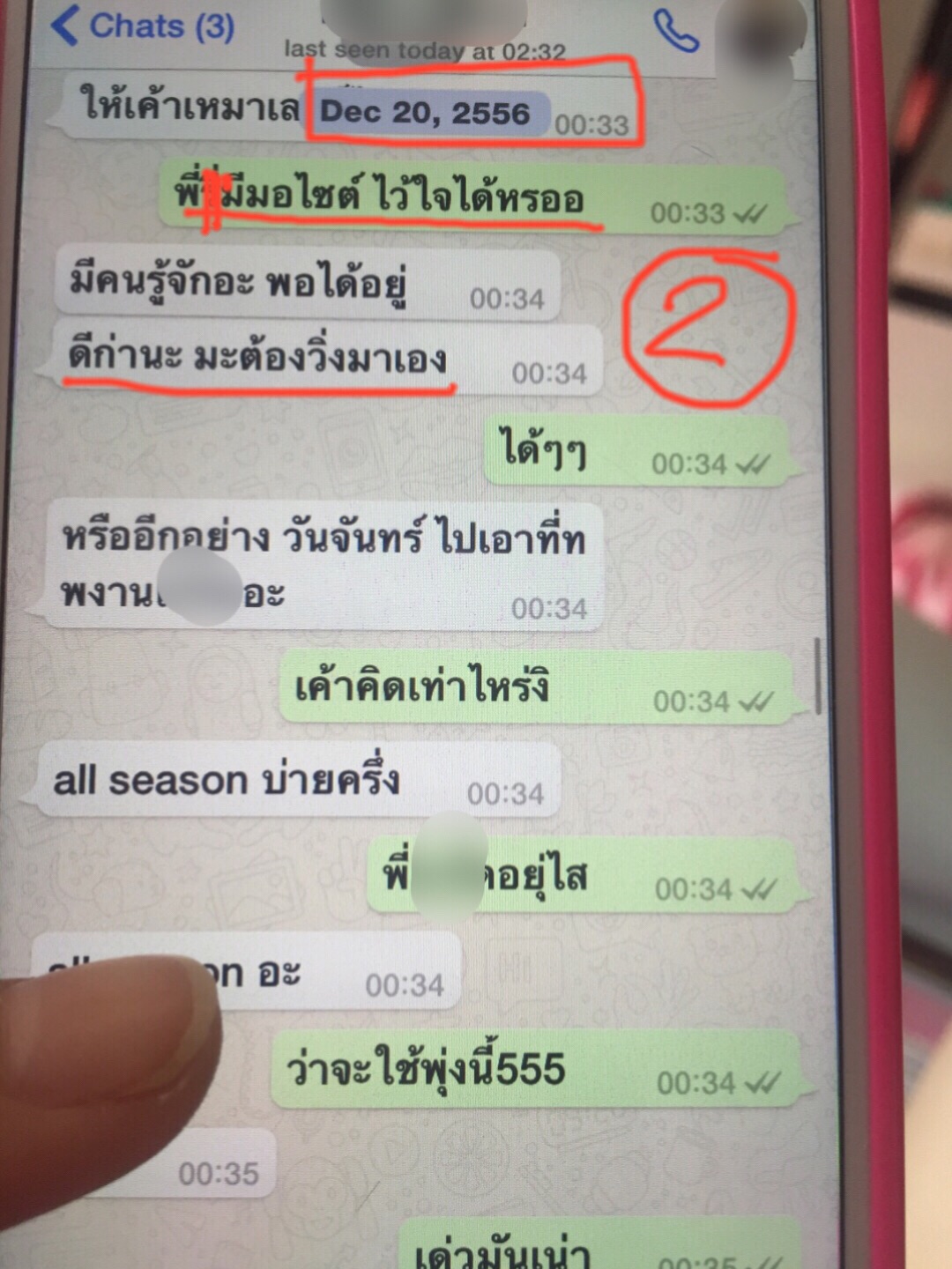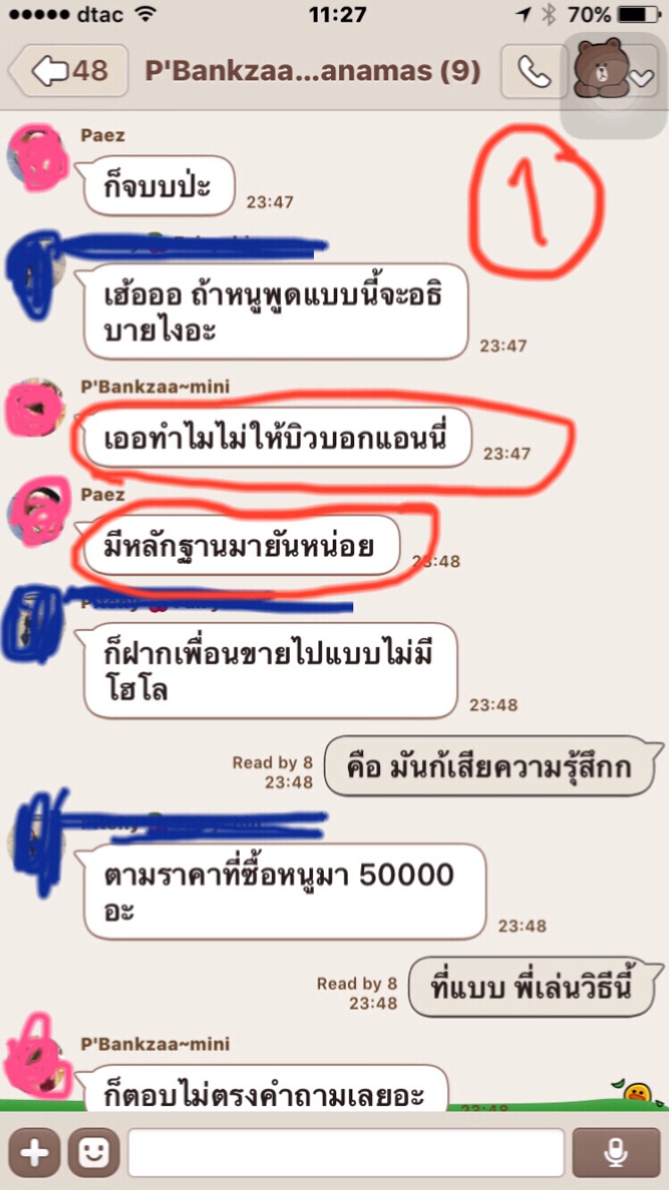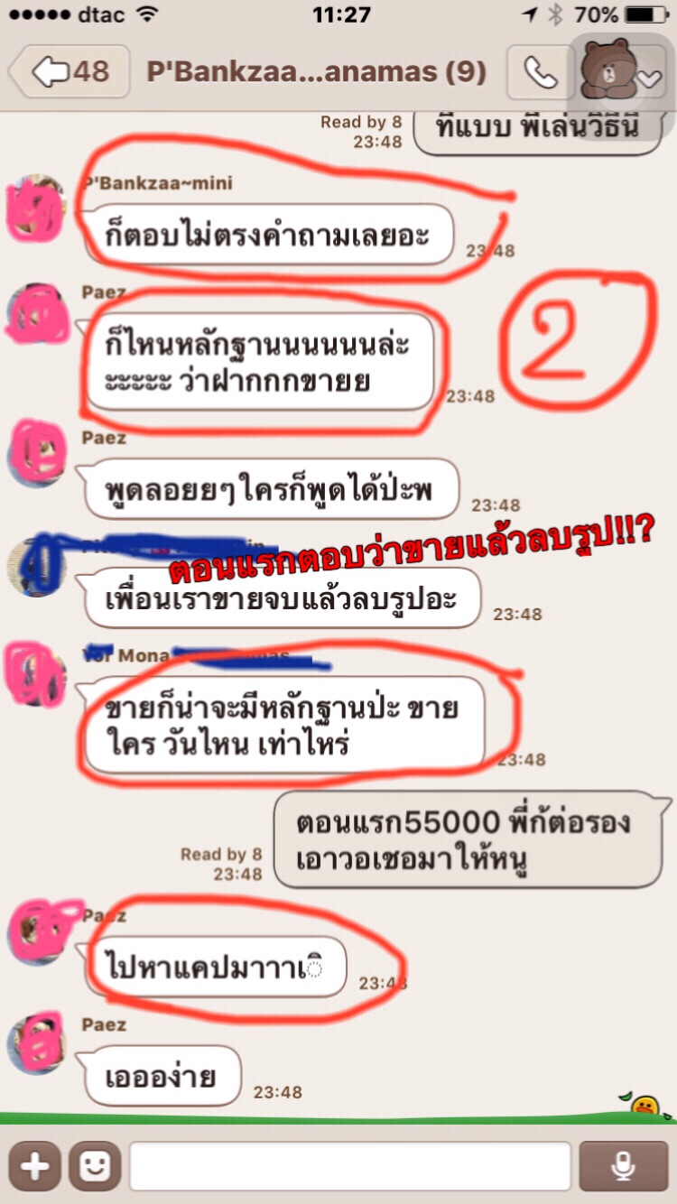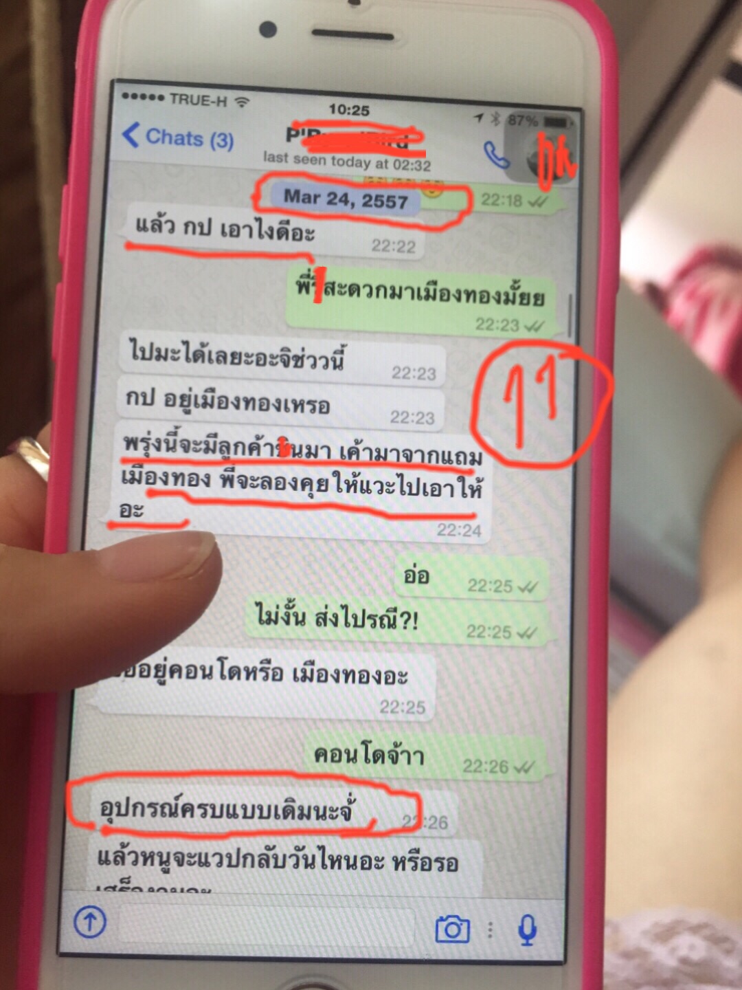 -ในแชท พี่ร. เสนอขายให้พี่บ. ในราคา 66,000 บาท!! โดนทิ้งท้ายว่า อย่าบอกเรานะ!! (เพราะอะไร เหตุอะไรถึงต้องห้ามบอกเรา!? )โดยที่แชทนั้น เป็นวันที่ 25/04/2014 (หลังจากส่งมอบให้นางวันที่21/04/2014 แต่วันที่25/04/2014 นางได้ไปขายต่อ!! แล้วบอกกับเราว่าจะเก็บไว้ใช้เอง!!)