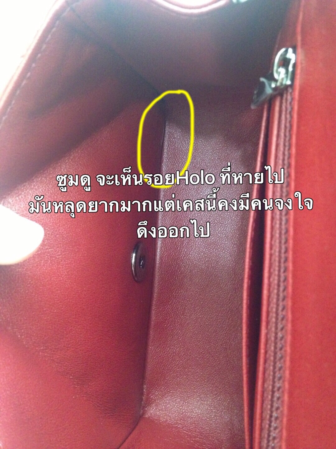 ช่วงเวลาเที่ยงคืนก่าๆ เราเลยนัดรับกระเป๋าที่เคยฝากพี่ร. ขาย แต่มาถึงมือเรา (แมสเซ็นเจอร์ของพี่ร. มาส่ง) พอได้กระเป๋า เราก็เปิดดูสภาพและตรวจสอบ อปก ต่างๆของกระเป๋า ปรากฏว่า!!!! การ์ด และ สติ๊กเกอร์ Holo ของกระเป๋าหายคะ!!!!