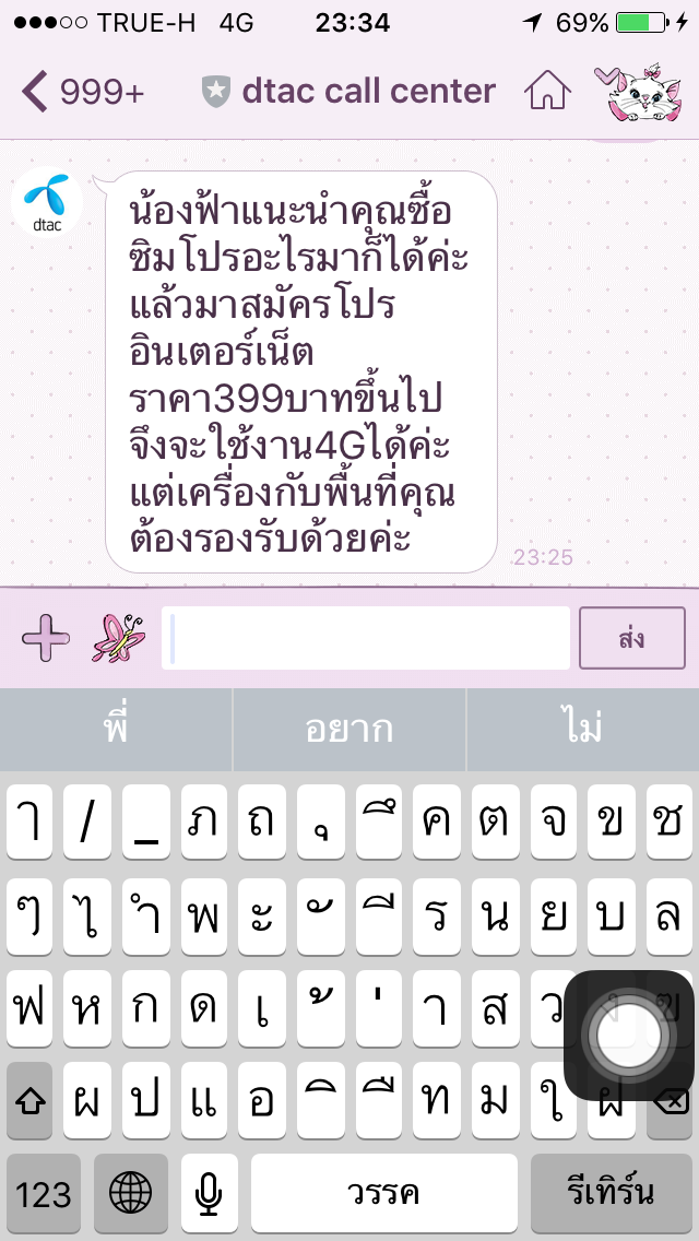 ต้องการซื้อซิมแฮปปี้มาทดลองใช้ว่าในพื้นที่ที่อยู่รองรับ4g ของดีแทคมั้ย และเน็ตใช้ดีมั้ย พนง.บอกต้องซื้อแพคเก็จ 399 ก่อน คือแค่จะซื้อมาทดลองก่อนว่าพื้นที่ที่เราใช้งานอยู่ เน็ต4gของดีแทคมันใช้งานได้ดีมั้ย ถ้าดีก็จะย้ายค่ายเลย แต่ถ้าต้องจ่าย 399บ. เพื่อทดลองใช้งานก็แพงไปนะคะ