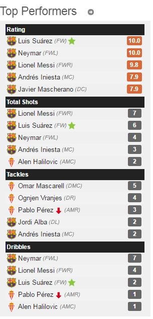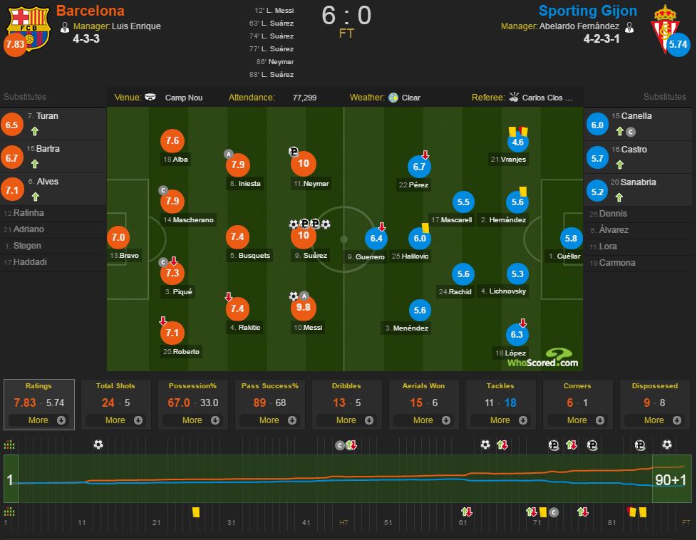 เรตติ้งแบ็คขวาเซอร์จี้ของเราไม่ธรรมดา เพราะไม่มีคะแนนจากประตู https://www.whoscored.com/Matches/1102843/MatchReport/Spain-La-Liga-2016-2017-Sporting-Gijon-Barcelona นักเตะผู้ได้รับรางวัลแข็งแรงที่สุ