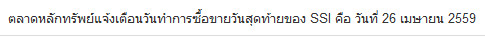 SSI ซื้อขายได้วันสุดท้าย 26 เมษายน 2559