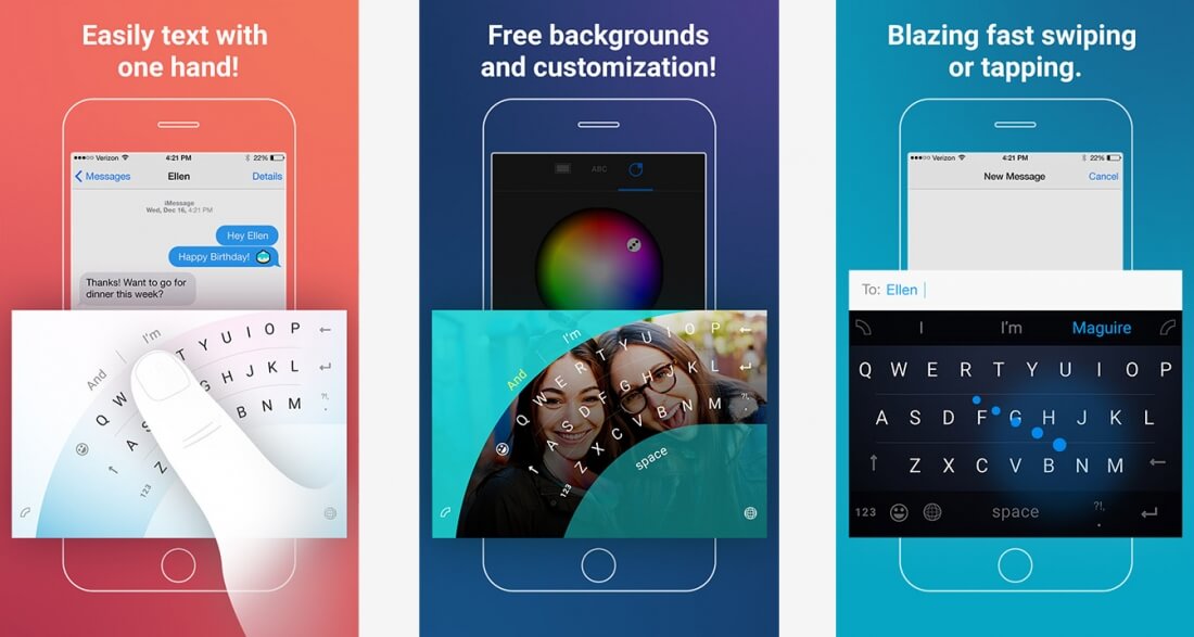 สำหรับ ‘Word Flow’ แป้นพิมพ์จะมีลักษณะโค้งตรงข้ามกับรูปแบบคีย์บอร์ดของแอปเปิ้ลโดยสิ้นเชิง ซึ่งคีย์บอร์ดรูปแบบนี้ จะมีความกะทัดรัด และใช้พื้นที่ในแนวตั้งมากกว่าที่ผู้ใช้ไอโฟนคุ้นเคย
