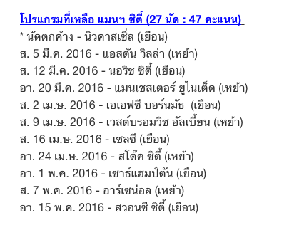 สามนัดสุดท้ายของเเมนซิตี้