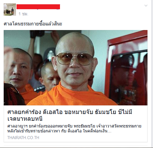 ล่าสุด เมื่อศาลยกคำร้องขอออกหมายจับหลวงพ่อธัมมชโยของDSI