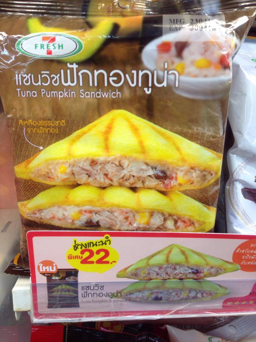 วันนี้ฤกษ์งามยามดี มาเดินช็อปที่7/11 สายตาเหลือบไปเห็น สินค้าใหม่ที่อยู่ๆดีก็มี เมื่อวาานไม่มี วันนี้มีเฉย(เลยนเสียงคุณโอปอ) ด้วยความที่ชอบกินแซนวิช7/11 อยู่แล้ว เพราะหาซื้อง่าย แล้วก็อร่อยอยู่ ก็เลยไปคว้าน้องใหม่มา1นาง นามว่า แซนวิชฟักทองทูน่า ปกติชอบทู่น่าและฟักทองแล้วด้วย แถมอยู่สายเหลือง เอ้ยไม่เกี่ยว จริงๆเข้ามี2รสนะ แต่ ดาวน์พร้อมกัน2คัน ไม่ไหว เลยถอยนางนี้มี เกริ่นมานานส่งผู้เข้าประกวดเจอโฉมหน้ากรรมการดีกว่า