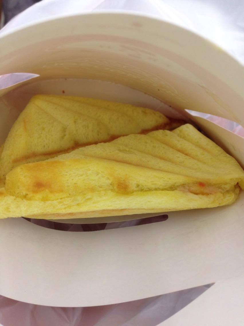 ต่อไปคือการอบเสร็จ แอบเพลียนิดนึงเนื่องจากคนเยอะมีการเปิดวอร์มเตาอบไว้ตลอดเพราะที่ที่ใช้บริการมีคนมาใช้บริการเยอะ เลยได้เเซนวิชที่ น่าจะกินได้แต่ไม่ร้อน อุ่นนิดนึง แต่ดำๆตรงขอบบ้าง แล้วแถวๆแผ่นขนมปังนิดหน่อย แต่พลิกกลับให้ดูด้านที่ไม่ดำ เลยพบการความเหลืองของขี้! เอ้ยฟักทอง ตามภาพ