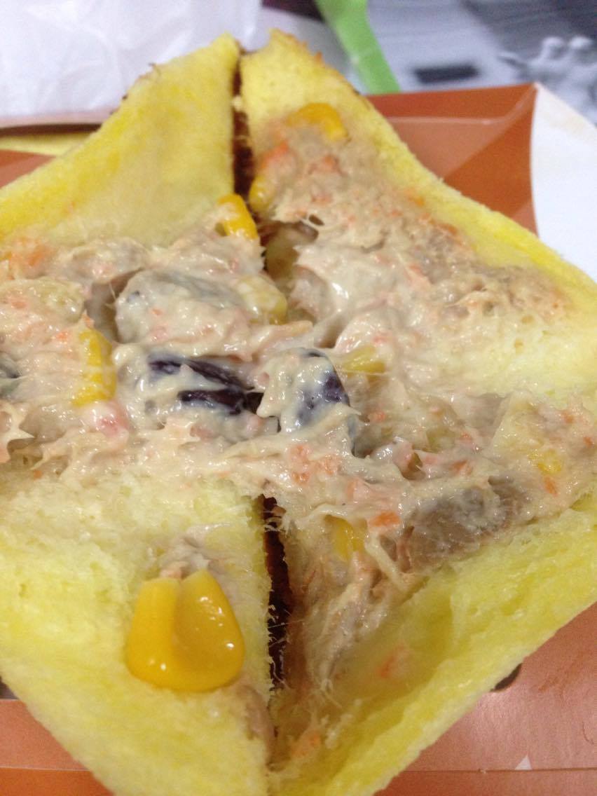 อบเสร็จรออะไรล่ะ ทานเลยสิ แต่วัฒนธรรมสมัยนี้เนอะเลยต้องถ่ายรูปโชว์ไว้หน่อย ก็ไม่แย่มากนะ รับได้อยู่ พอกัดเข้าไปคำแรก โอ้ววว แป้ง 5555 หยอกๆ ก็มีเนื้อทูน่าผสมกับข้าวโพด รสชาติคล้ายๆกับทูน่าคอร์นสลัดของ ไก่ทอดญี่ห้อหนึ่งแต่จะแห้งกว่า รสชาติก็ได้ทู่น่าผสมข้าวโพดเบาๆ