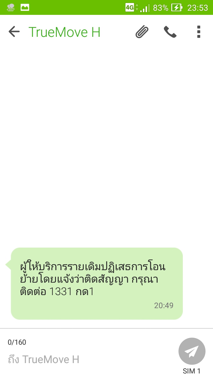 เมื่อวันอาทิตย์ ได้ทำการย้ายค่ายจาก ดีแทคไปทรู วันนี้ได้ส่งข้อความมาว่า ติดสัญญา!!! คือติดสัญญาไรคะ แค่ทำจากเติมเงินไปรายเดือน มีโปรส่วนลดค่าบริการ แต่!!!ถามพนักงานแล้วนะคะว่าไม่ติด จะดึงจะยื้อทำไมคะ ในเมื่อพื้นที่ใช้งานดิฉันเครือข่ายคณไม่สะดวกต่อการใช้งานของดิฉัน เนตช้า อืด สัญญานไม่จับ4G ให้รอมาตรวจสอบหรอคะคงอีกนาน ขอย้ายค่ายได้ไหมล่ะคะ จะดึงยื้อทำไมคะ หรือเป็นสัญญาการใช้งานแอบส่งโปรเนตใช้ฟรี1GBคะ เอาออกค่ะ ไม่เอา ต้องการย้ายค่ายด่วนค่ะ อย่ามัดมือชก ถ้าเครือข่ายไหนดีจริงผู้ใช้เค้าก็อยากอยู่อยากใช้บริการค่ะ ตอนนี้เดือดร้อนค่ะ เนตก็ใช้ได้ไม่เต็มที่ โทรก็หลุดๆ ***ขนาดCCโทรกลับมาเมื่อสักพักยังหลุดเลยจ้า*****