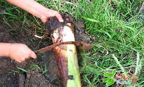 1. ให้เพื่อน ๆ ที่สนใจเพาะปลูกหน่อกล้วยหอมทอง กลับหัว