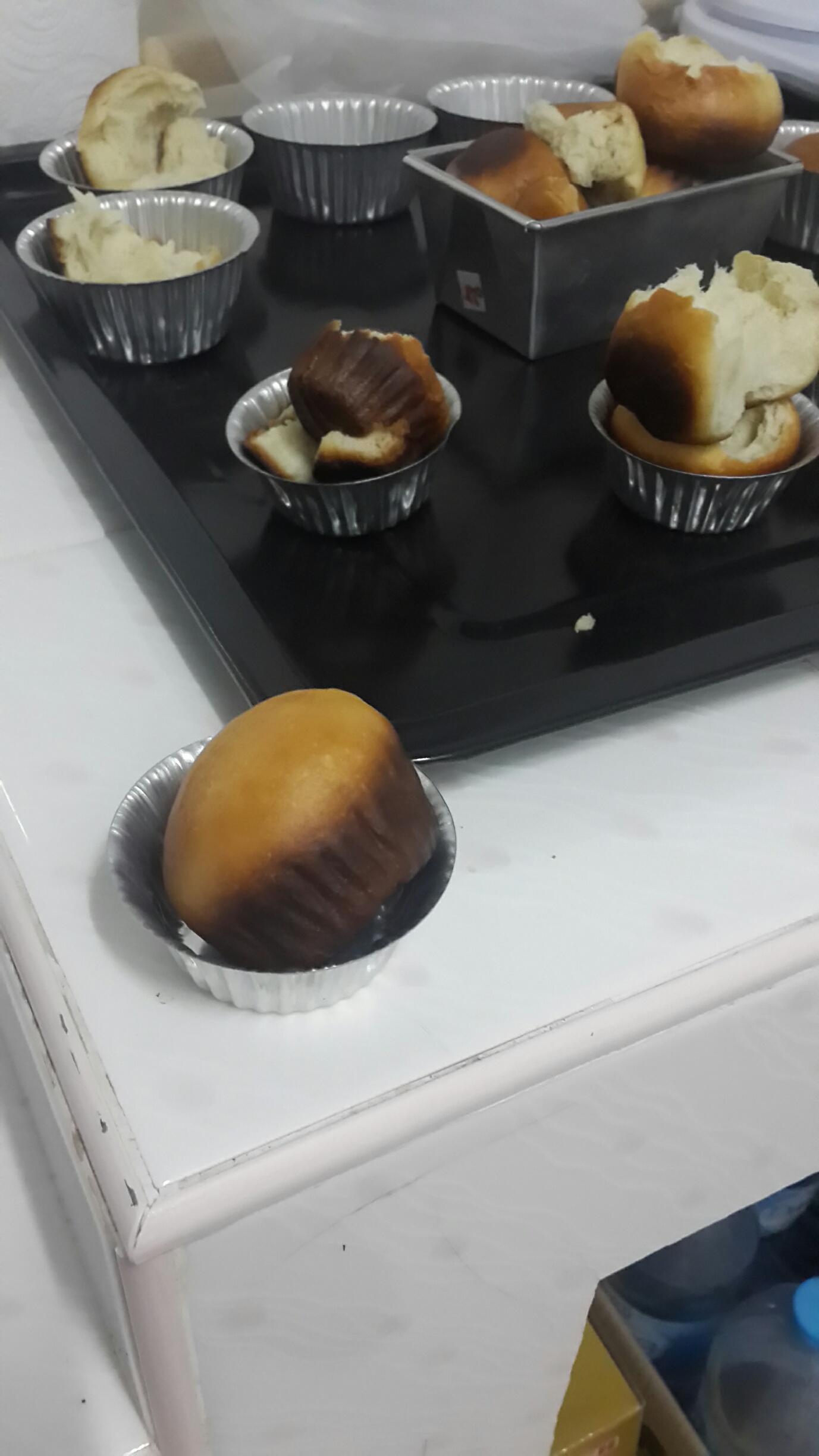 เราอบขนมปังครั้งแรก แล้วก้นมันไหม้ ทั้งๆที่ อุณภูมิน้อยกว่าที่สูตรบอกไว้อีกค่ะ
