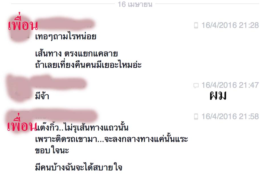 เมื่อวันที่ 16 P ทักมาถามว่าแถวนนทบุรีตอนเที่ยงคืนมีคนเยอะไหม ฉันก็ตอบไปตามแชท