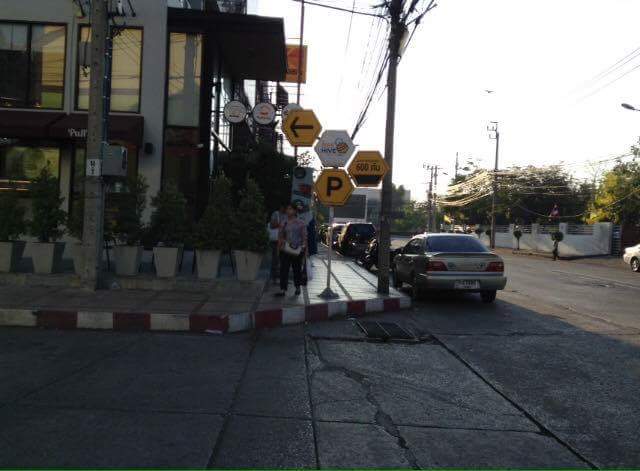 พอลงรถเมล์แล้ว ให้ข้ามไปฝั่งตรงข้ามค่ะ แล้วมองหามอเตอร์ไซค์รับจ้าง บอกเขาว่าไปโครงการสุโขทัย 99 ซึ่งตอนเราบอกไปแบบนั้น พี่วินเขาไม่รู้จัก (ฮา) อาจจะเพราะเป็นโครงการที่เพิ่งสร้างใหม่ไม่นาน(?) เลยต้องเปิดแผนที่โชว์ แล้วบอกว่าเลยกรมที่ดินไปหน่อย
