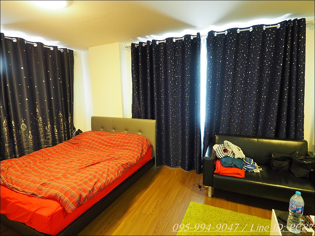 เป็นห้องอยู่อาคาร B ตึกด้านในสุด ชั้น 4 ห้องมุม ไม่ติดใคร เพราะติดบันไดหนีไฟ มี 2 หน้าต่าง ลมดีมาก (ทิศตะวันออกและทิศใต้) ขนาด 30.35 ตารางเมตร