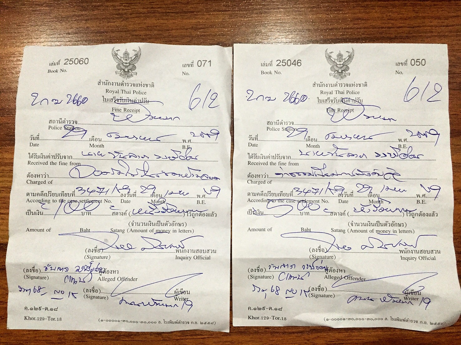 ขอใบเสร็จค่าปรับด้วย ปลายสายบอกว่า ผมกำลังไปเสียค่าปรับให้ ตามผมไป อ้าวเฮ้ย แล้ว คุณไม่ใช่ตำรวจ มีสิทธิ์มาล็อคล้อ และปลดล็อคล้อประชาชนด้วยเหรอ