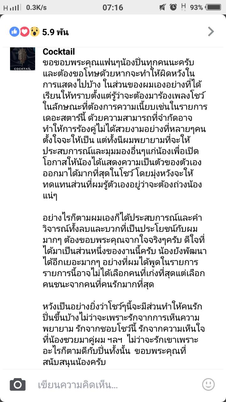เมื่อคืน โอม Cocktail มาเป็นแขกรับเชิญร้องเพลง เธอ คู่กับน้องปิ่น พรชนก หมายเลข 3 The Star 12 ส่วนตัวเราชอบเวอร์ชั่นนี้มากค่ะ มีการใส่ท่อนเอื้อนแบบลูกทุ่งเข้าไป ทำให้เพลงมีเสน่ห์ขึ้นมาก มีหลายคนวิจารณ