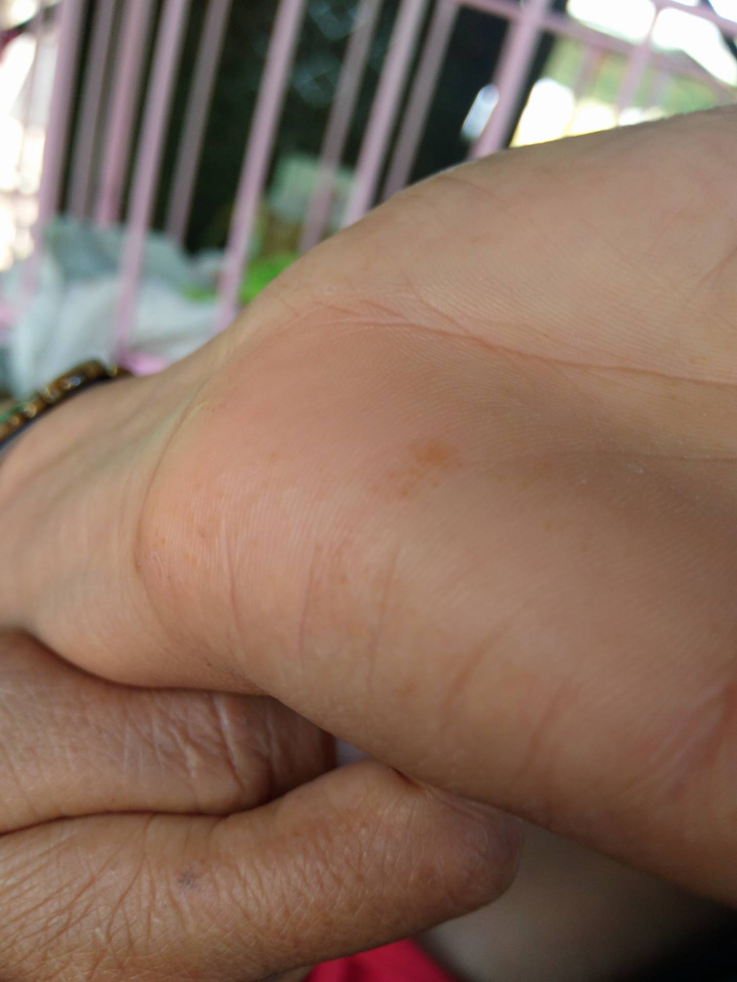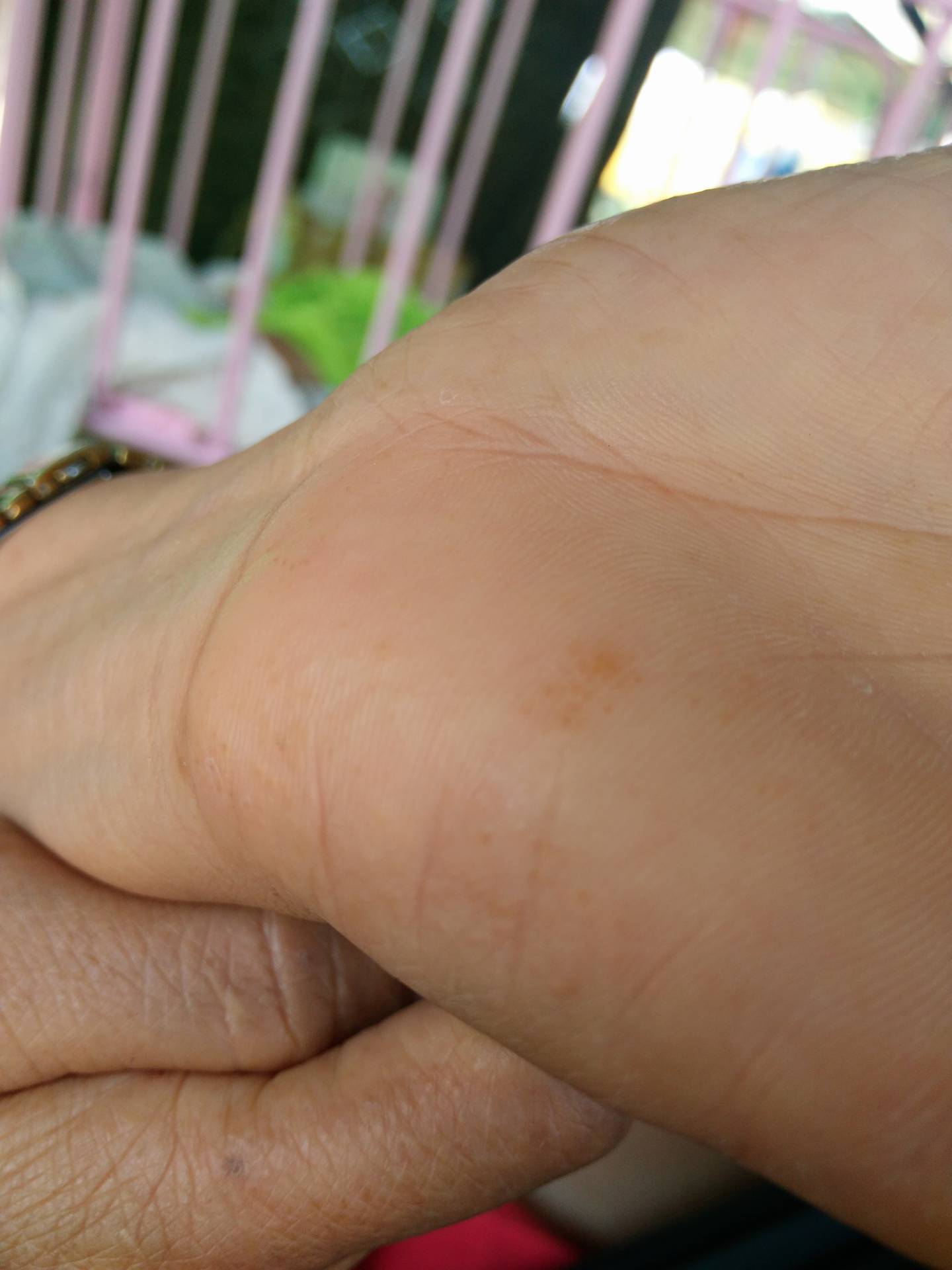 เป็นตุ่มใสๆ เมื่อวานรู้สึกคันๆ แต่ไม่ได้เกาเลยนะ และบางครั้งมือก็ชา พอตื่นเช้ามาวันนี้ไม่คัน แต่ตุ่มเห็นชัดกว่าเมื่อวาน