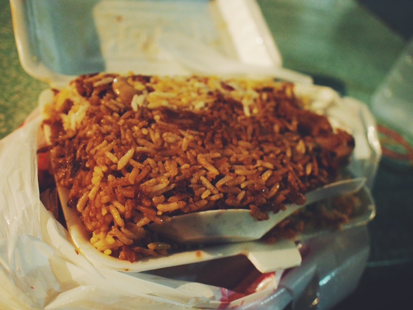 น้องพนักงานโรงแรมก็เอากุญแจล็อคเกอร์มาให้ เก็บข้าวของ อาบน้ำเสร็จก็เดินไปหาของกินค่ะ เจอร้านข้าวหมกไก่สไตล์พม่า มีน้ำจิ้มรสชาติแปลกๆ แต่ก็อร่อยไปอีกแบบ ราคา 1,900 จ๊าด หรือประมาณ 60 บาท กล่องใหญ่มาก ประมานการแล้วกินไม่หมดแน่เลยแบ่งให้เด็กๆที่โรงแรมครึ่งนึง