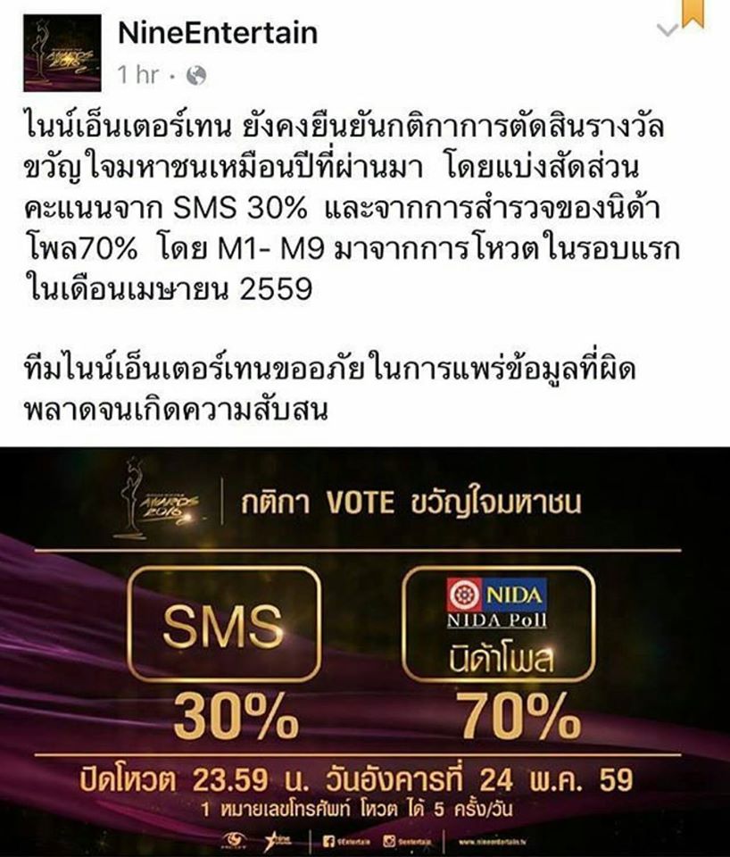 โหวต SMS (ครั้งละ 3 บาท)