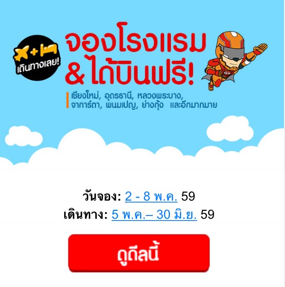 เจอโปรนี้ไป เราถึงกับมือไม้สั่น บัตรเครดิตสะดุ้ง จองโรงแรม ได้บินฟรี ของ AirAsiaGo นั่นคือ การจองโรงแรมพร้อมตั๋วเครื่องบิน ในราคาที่สุดสะพรึง ถูกกว่าโปร 0 บาท ที่จองปีนี้บินปีหน้าเสียอีก สมควรจัดนะครับ สำหรับคนที่สามารถเดินทางวันธรรมดาได้