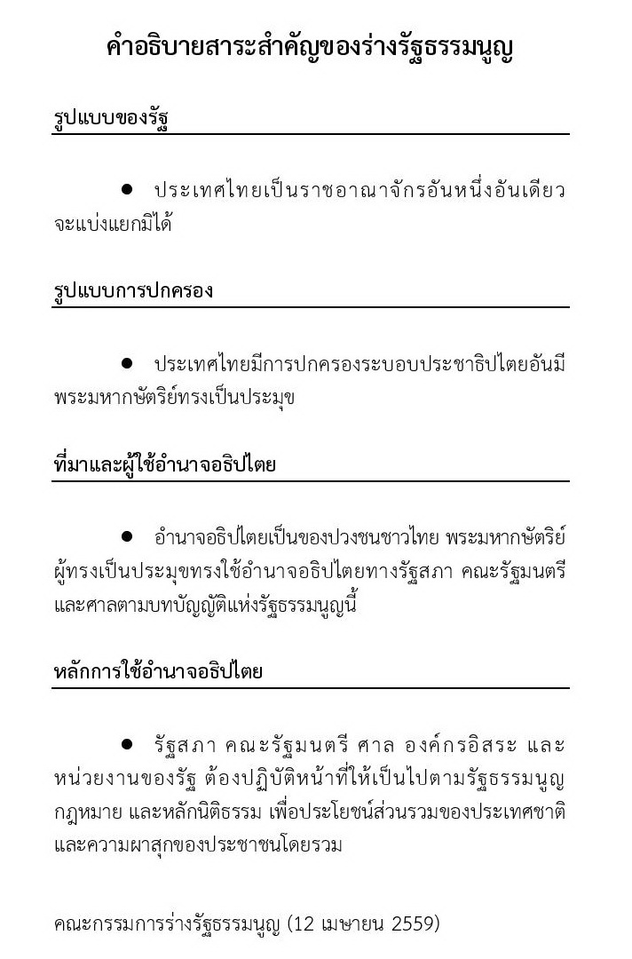 คำอธิบายสาระสำคัญของร่างรัฐธรรมนูญ ปี 2559