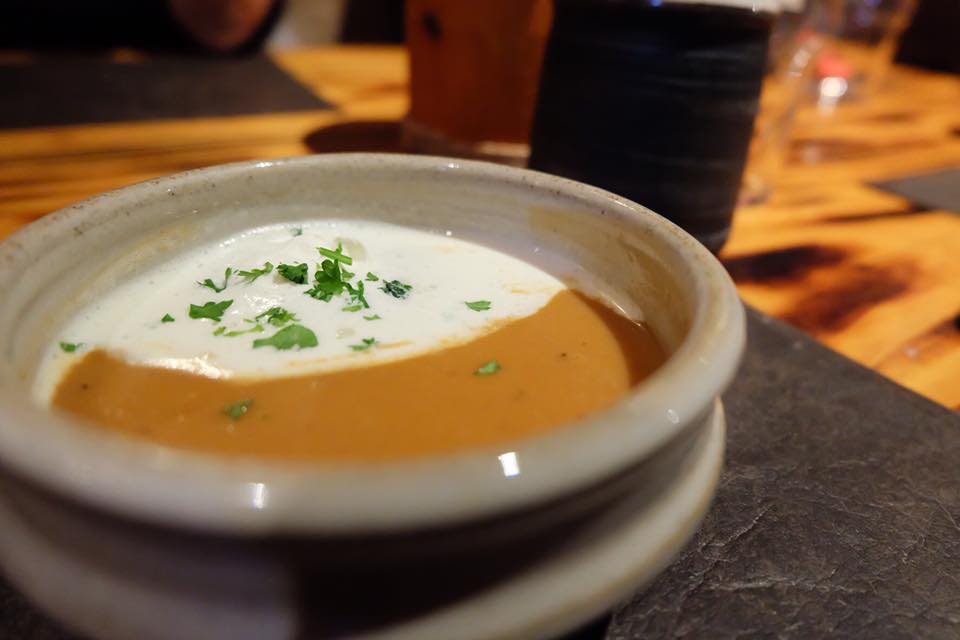 เสิร์ฟพร้อมกับบางสิ่งที่คล้ายคลึงมะเขือเทศบด ขนมปังบ้านเขาจะร่วนๆเลย แต่ไม่รู้แหะมันเหมือนได้กลิ่นอายของประเทศเลย