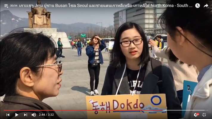 เห็นตำรวจเดินล้อมเด็กๆ ท่าทางเรียนม.ต้น ยืนถือภาพและเอกสาร เด็กๆ แจกเอกสารให้ตำรวจ ตำรวจโทรรายงานเจ้านาย แล้วก็ปล่อยให้เด็กๆ ทำกิจกรรมรณรงค์ต่อ เราได้สัมภาษณ์ก่อนใคร แต่เด็กภาษายังไม่แข็งแรงเราเองก็ไม่รู้ภาษาเกาหลี ดูเหมือนว่า จะทำกิจกรรมจิตสาธารณะ ซึ่งเป็นกิจกรรมหนึ่งตามหลักสูตรของวิชามาตรฐานสากล ที่มีวัตถุประสงค์ให้เด็กๆ ร่วมรับผิดชอบสังคมโลกร่วมกัน