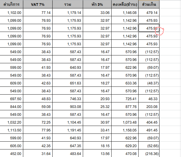 สอบถามการคำนวนผลรวม Round หน่อยค่ะ จากตาราง ช่อง I จะใช้สูตร ROUND ตามในตาราง เพื่อให้ได้ค่าทศนิยม 2 ตำแหน่ง และปัดค่าตำแหน่งที่ 3 ซึ่งจะมี 2 ช่องคือสินค้าที่ 7 และ 8 ผลจำนวนเงิน ได้ 1540.42 แต่ เมื่