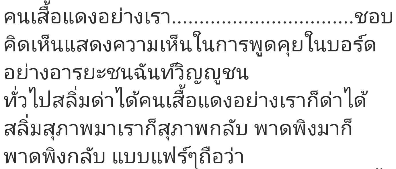 พักนี้ไม่ค่อยเข้ามาห้อง ร.ด.น เพราะไม่รู้จะเข้ามาอ่านอะไร กระทู้ตอบโต้อย่างมีเหตุมีผล หายไปหมด เหลือแต่สลิ่มป.ญ.อ ที่ไม่เคยมีข้อมูลอะไรในสมองเลย มีแต่คำด่า เสียดสี พอโดนโต้แย้งก็ไม่เคยเข้ามาโต้ตอบ แ
