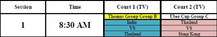 Thomas Cup ไทยเจออินเดีย อยู่คอร์ทถ่ายทอดที่ 1