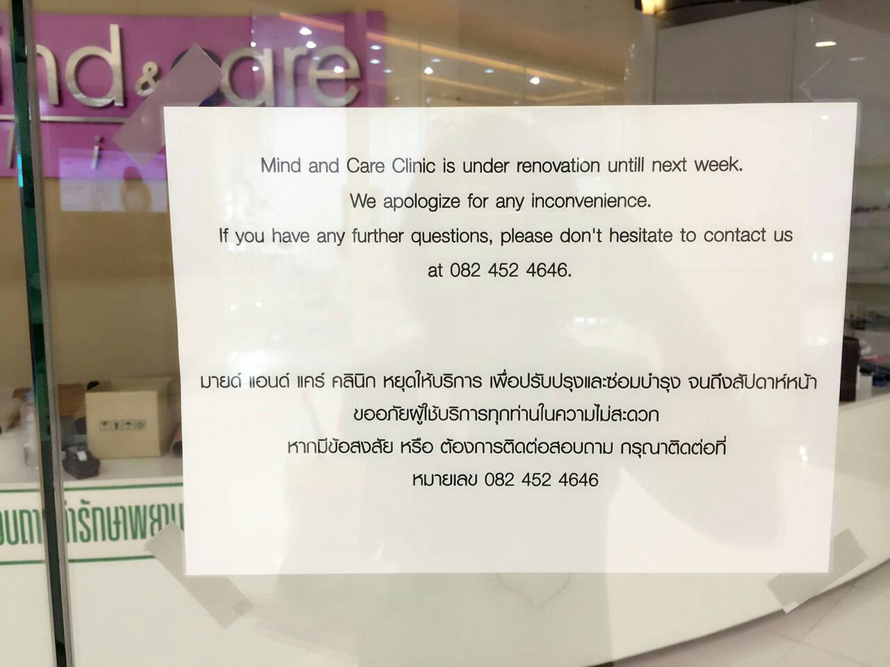พอดีไปใช้บริการ คลีนิคเสริมความงาม mild and care clinic ที่ตึกคิวเฮ้าส์ลุมพินี ชั้น 2 แต่อยู่ๆปิดร้านหนี ยังเหลือค่าคอร์สอีกเยอะมาก เสียใจที่ไว้ใจเพราะตอนแรกที่ไปเห็นเป็นหมอแอร์คนดัง(คนที่เคยเป็นข่าวดังๆกับไฮโซมาบุกร้านด่าแย่งตำรวจกัน) ออกมาต้อนรับลูกค้าอย่างดี เพิ่งมารู้ทีหลังว่าหมอแอร์ถอนหุ้นไปแล้ว เซ็งจริงๆ