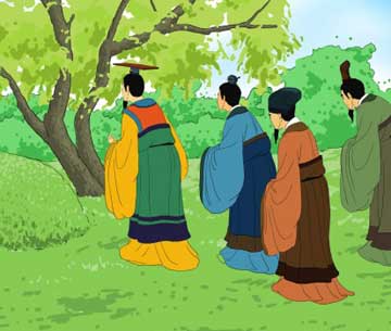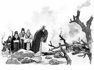 จิ้นเหวินกงส่งกองทหารไปเชิญแต่หาไม่พบ เหล่าขุนนางจึงเสนออุบายให้จุดไฟเผาป่ารอบภูเขาสามด้าน