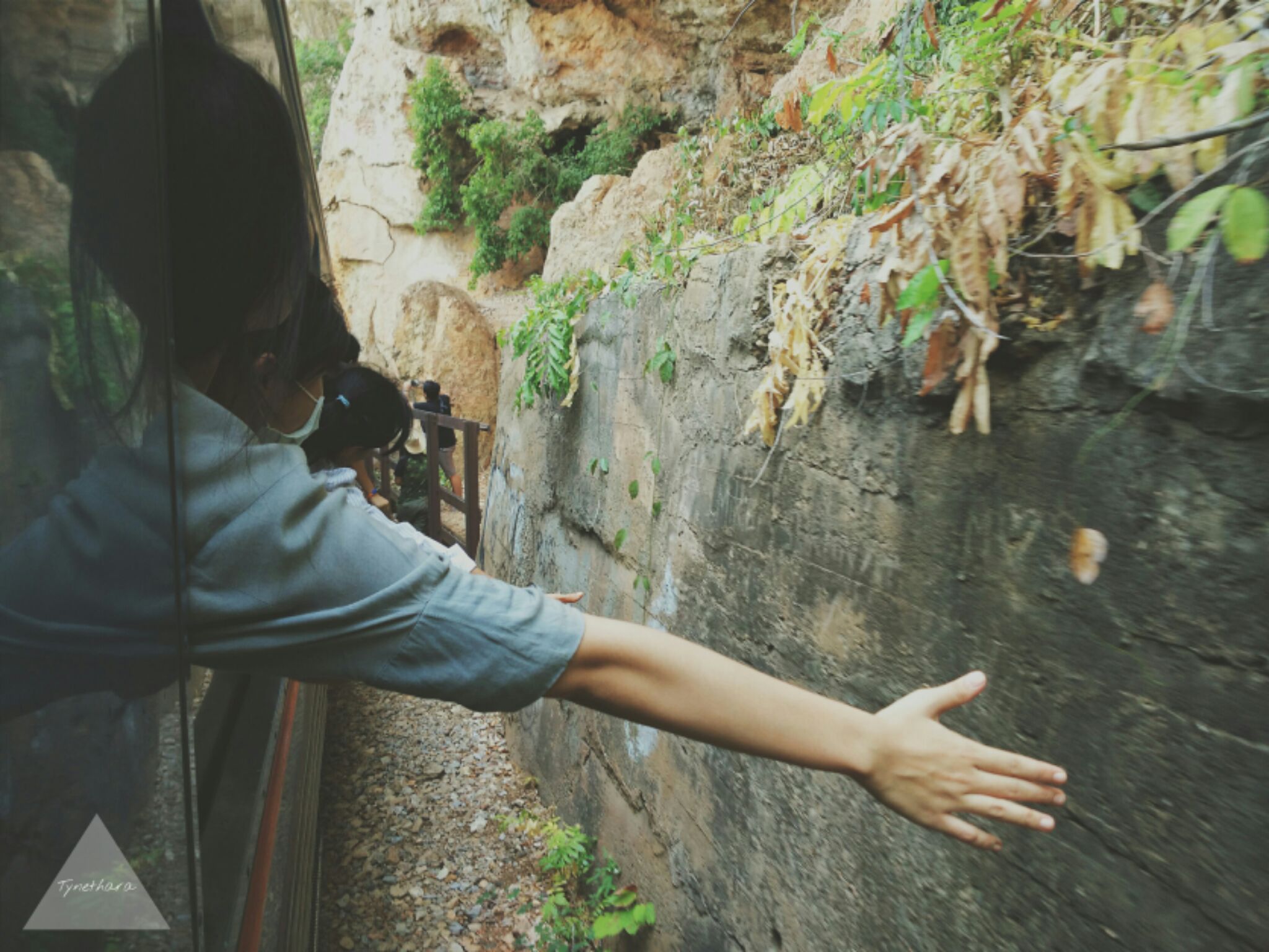 แล้วเราก็มุ่งสู่เส้นทางสายมรณะไกด์บอกว่าให้เอาหัวแตะผาเอ๊ยไม่ใช่! เอามือแตะผาแล้วมาแตะที่หัว อธิฐานอะไรก่ะจะได้ดั่งหวัง