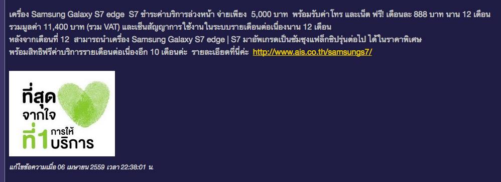 โปร ais samsung s7 edge เหมาค่าโทร รายปี 5000 แต่เรียกบิลมาอีก