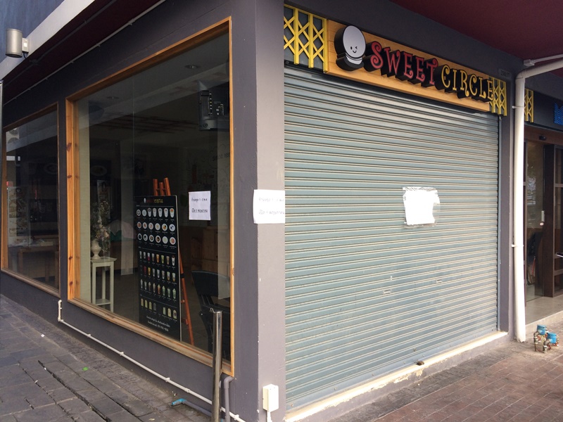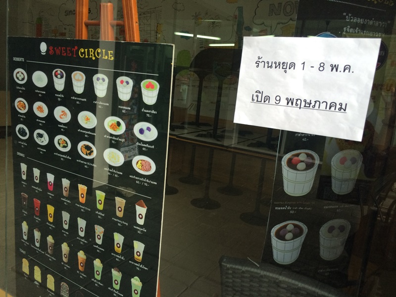 ร้านปิดเจ้าค่า ปิดยาวด้วย แอบเซ็งเบาๆ แต่ไม่เป็นไรคิดจะกินต้องมีแผนสำรองจริงๆ ไม่ใช่แผนสำรองหรอก ก็ตั้งใจมาตามกินขนมหวานในโครงการนี้ตั้งแต่แรกอยู่แล้วนี่ 55 ก็ไปกินร้านอื่นปลอบใจแทนแล้วกัน แต่เอ๊ะมองเลยร้านบัวลอยไปร้านข้างๆ เห็นอะไรแว๊บๆ ท่าทางจะเป็นป้ายโปรโมชั่น ลองไปสำรวจดูหน่อยก็ดี