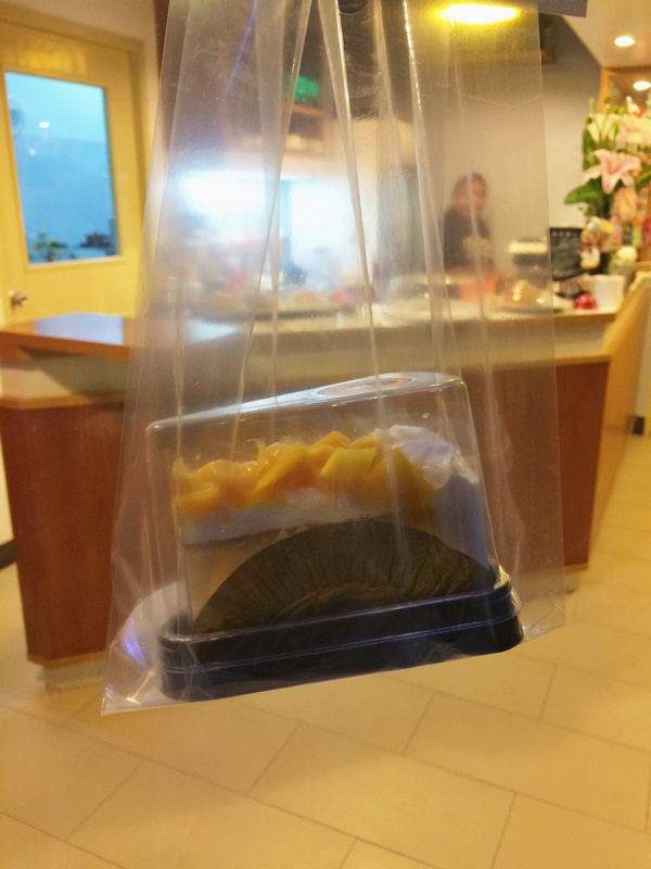 สรุปว่าสั่งรสนมไป พนักงานกำลังจะใส่ถุงให้ แต่ จขกท.ดันไปเห็นเมนูที่มันชวนให้ลองมากกว่า นั่นก็คือซูเฟล่ชีสเค้กหน้ามะม่วงมา ราคา 60 บาท ถูกกว่าซูเฟล่ชีสเค้กธรรมดาซะงั้น เพื่อน จขกท.ได้คุกกี้อัลมอนด์ติดไม้ติดมือกลับไป คุกกี้ก็มีให้ชิมนะ อร่อยเหมือนกัน ส่วนเค้กที่ซื้อมา จขกท.เอาไว้กินตอนเช้าเพราะหลังจากมื้อนั้นอิ่มจนกินอะไรไม่ไหวแล้ว ถ้าขืนยังยัดเค้กเข้าไปมีหวังนอนอืดแน่ 55