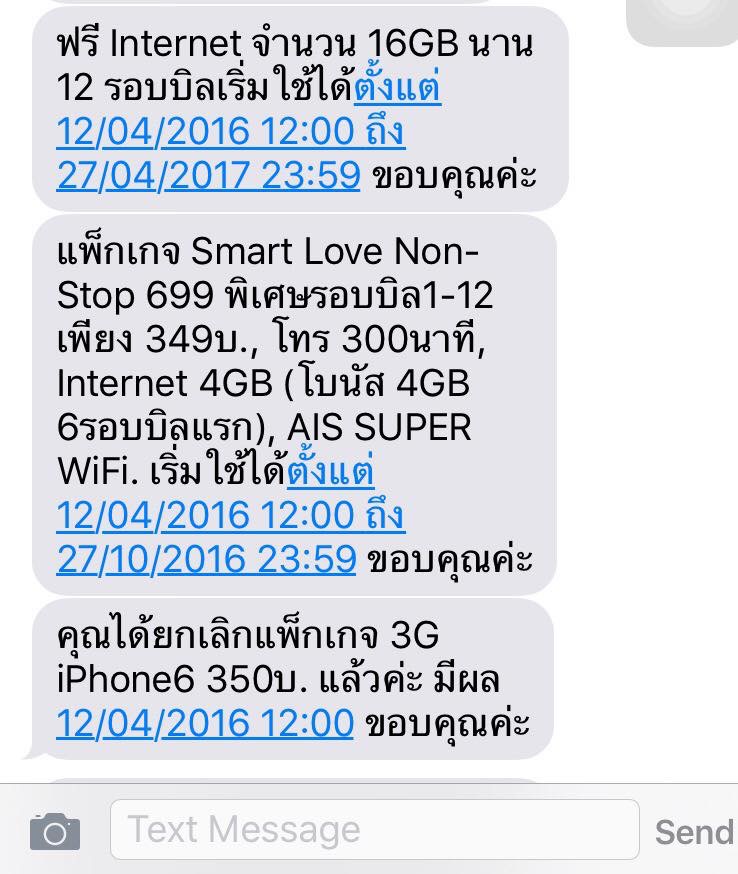 ผมเพิ่งทราบโปรโทรศัพท์ของคุณแม่ ค่าย AIS (ส่วนตัวใช้ Dtac ใช้มาเกิน 10 ปี ไม่เคยเรียกร้องอะไร แต่อยู่ดีๆมี sms แทนคำขอบคุณที่วางใจ ให้ เนตเพิ่มจากเดิม ถึง 10 Gb ในราคาที่ถูกสุด). แต่วันนี้เบอร์ของคุ